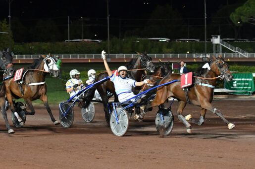 Gennaro Casillo e Antonio Di Nardo si sono poi ripetuti nel Premio Sem, la condizionata sui 1640 metri per cavalli di 3 anni. Dal suo arrivo nelle scuderie del trainer campano, Demon si è trasformato in una gioiosa macchina da guerra: stasera ha centrato il quinto successo nelle ultime sette uscite, sfondando dopo 700 metri su Diva delle Badie e poi imponendo il suo passo ai rivali per vincere netto a media di 1.14.2. Diva delle Badie probabilmente non era al top, ha faticato a tenere la scia del vincitore ma ha provato almeno a difendere il piazzamento, in retta però è stata superata all’interno da un sorprendente Dagru’ di Meletro ma soprattutto da Dirty Dancing, che è finita forte a centro pista in retta emergendo al secondo posto.